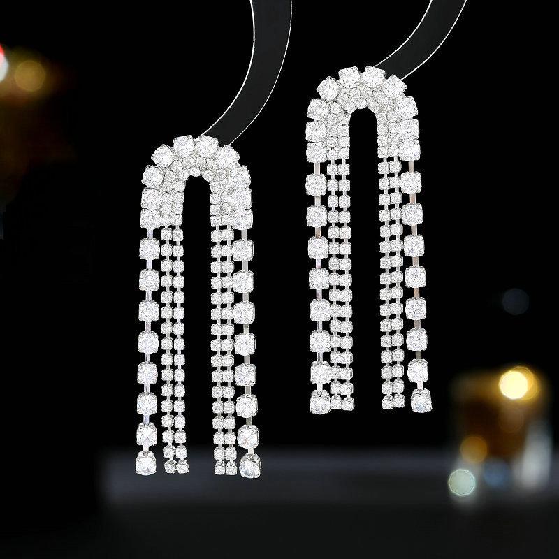 Европейские и американские модные новые серьги с цирконом Superflash для женщин, легкие роскошные темпераментные серьги с длинной бахромой для банкетного платья