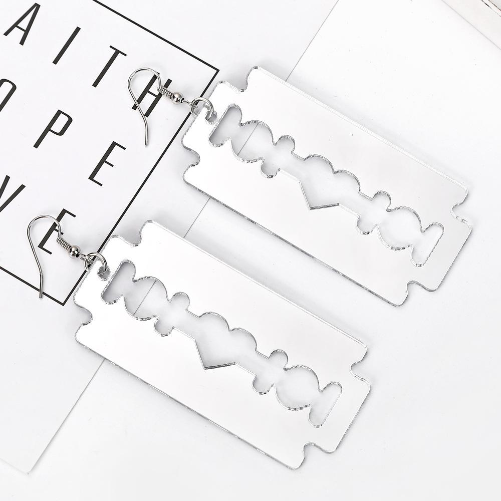 Европейские и американские популярные новые персонализированные серьги-лезвия для бритья из металла в геометрическом стиле белый