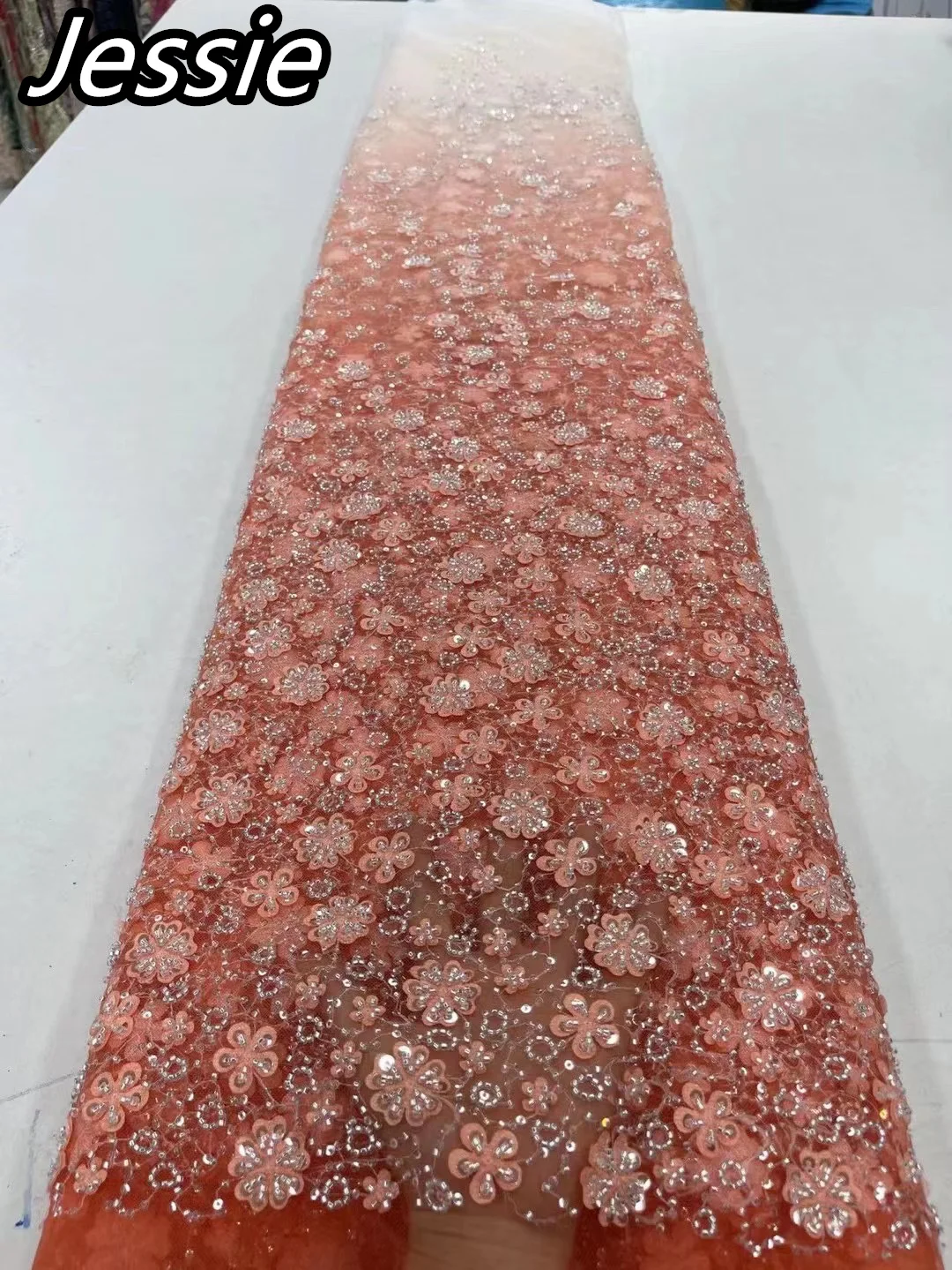 Европейский Летний стиль, градиентная модная Кружевная Сетка, тяжелая промышленная Вышивка, блестки, бисер, тюбик, цветочное вечернее платье, ткань