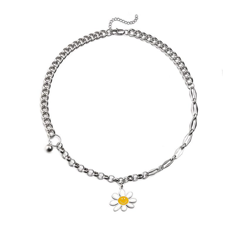 Европейский и американский хип-хоп стиль двусторонняя ромашка смайлик нержавеющая сталь ключица ожерелье