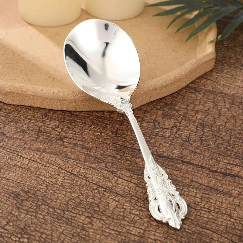 Европейский придворный сплав рельефная столовая посуда трехмерный узор ложка, бытовая сплошная позолоченная ложка серебряный