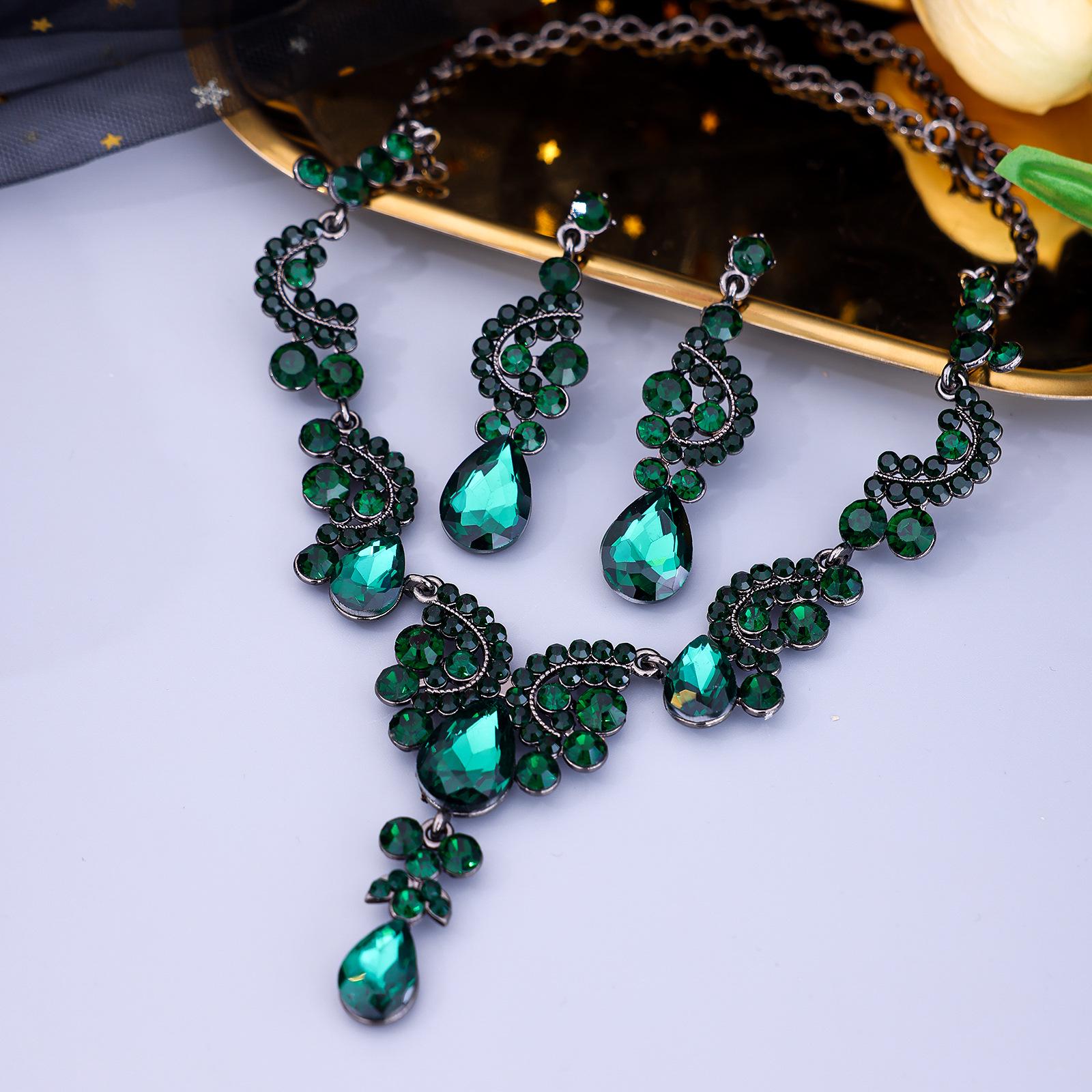 Европейский роскошный комплект из ожерелья и серег в форме капли воды с модной двухсекционной цепочкой для платья