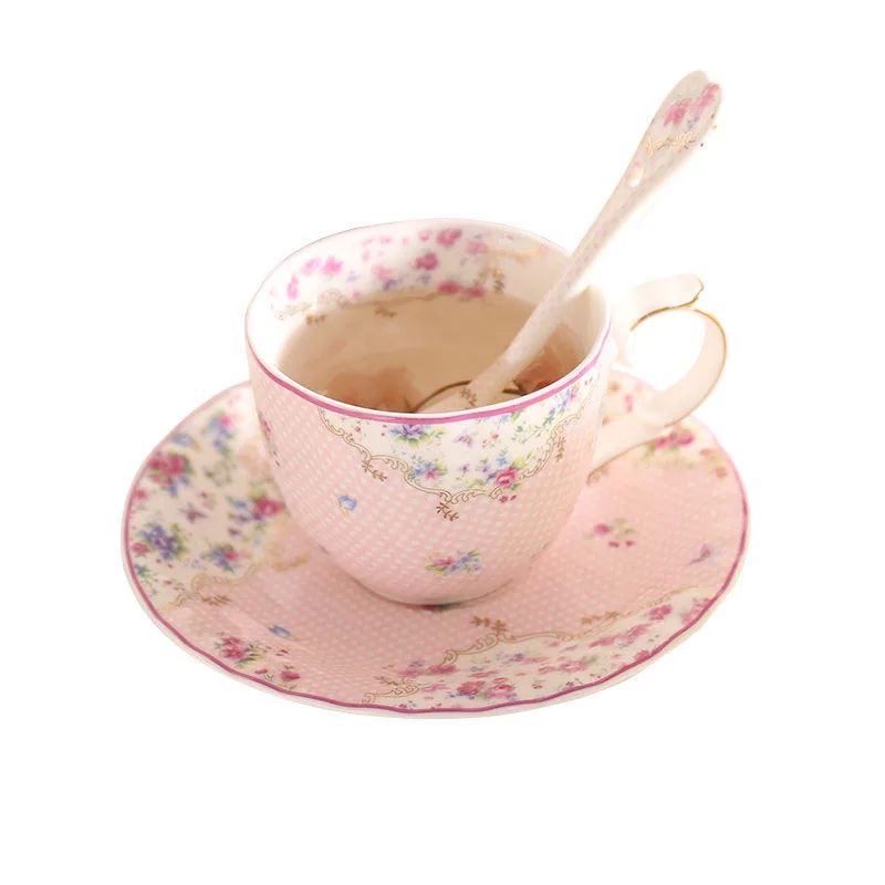 Европейский стиль пасторальная костяная фарфоровая офисная чайная чашка с блюдцем набор розовая керамическая кружка для воды Улучшенная ф...