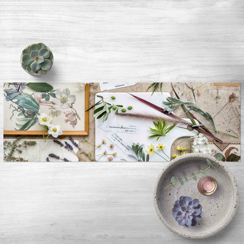 Alfombras vinílicas - Flowers And Garden Herbs Vintage - Panorama Formato apaisado Dimensión LxA: 50cm x 150cm
