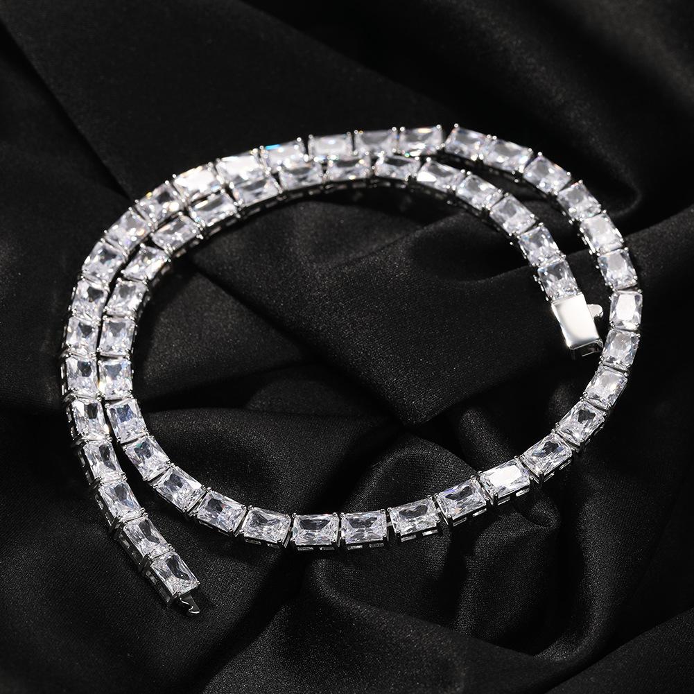 Европейский хип-хоп прямоугольный циркон ожерелье Ins личность простая теннисная цепочка уличная ниша медная цепочка на ключицы 20inch серебряный