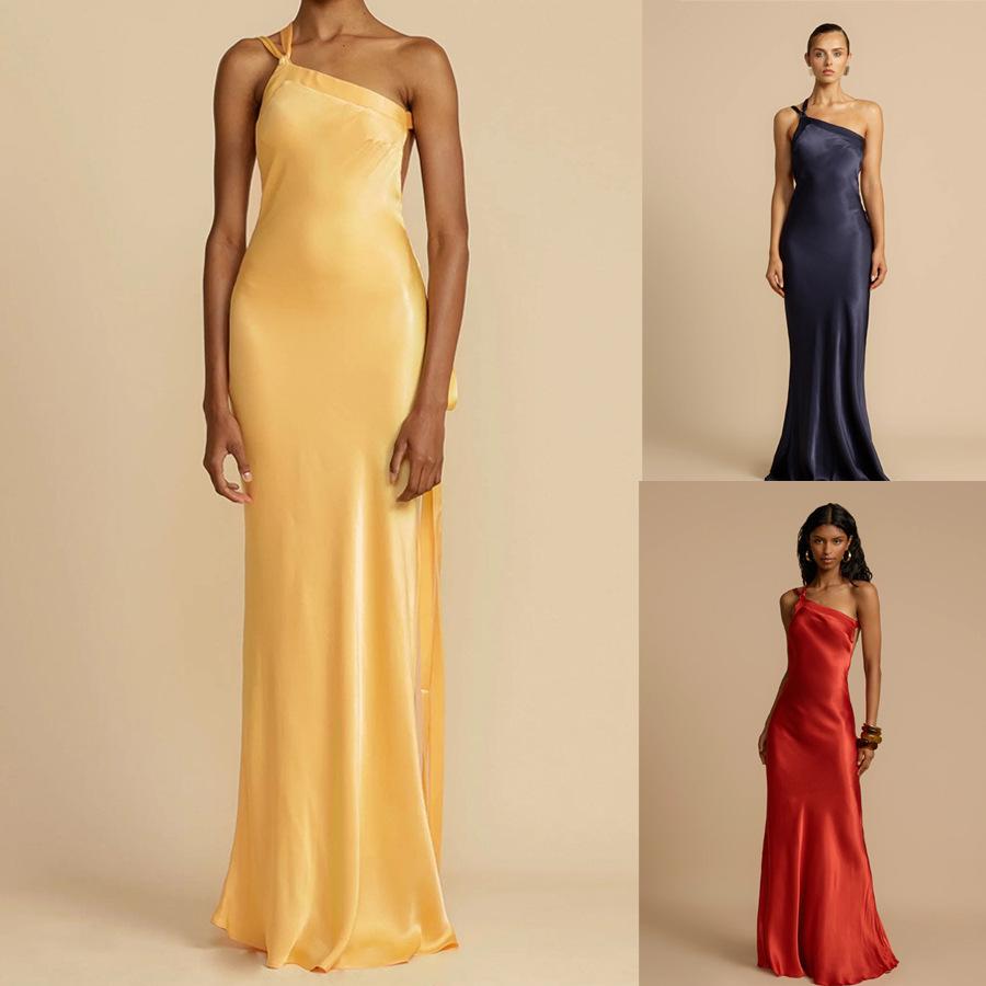 Европейское и американское весенне-летнее платье на одно плечо, облегающее, атласное, для вечеринки - Модный и повседневный стиль INS Small темно-синий