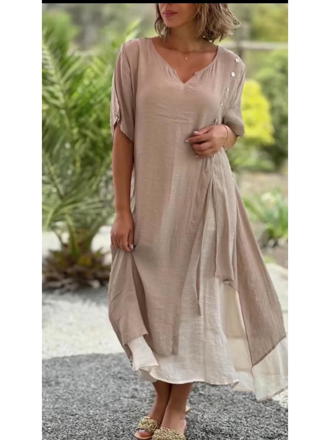 Европейское и американское женское асимметричное платье с V-образным вырезом и короткими рукавами - Летняя мода XXXL хаки