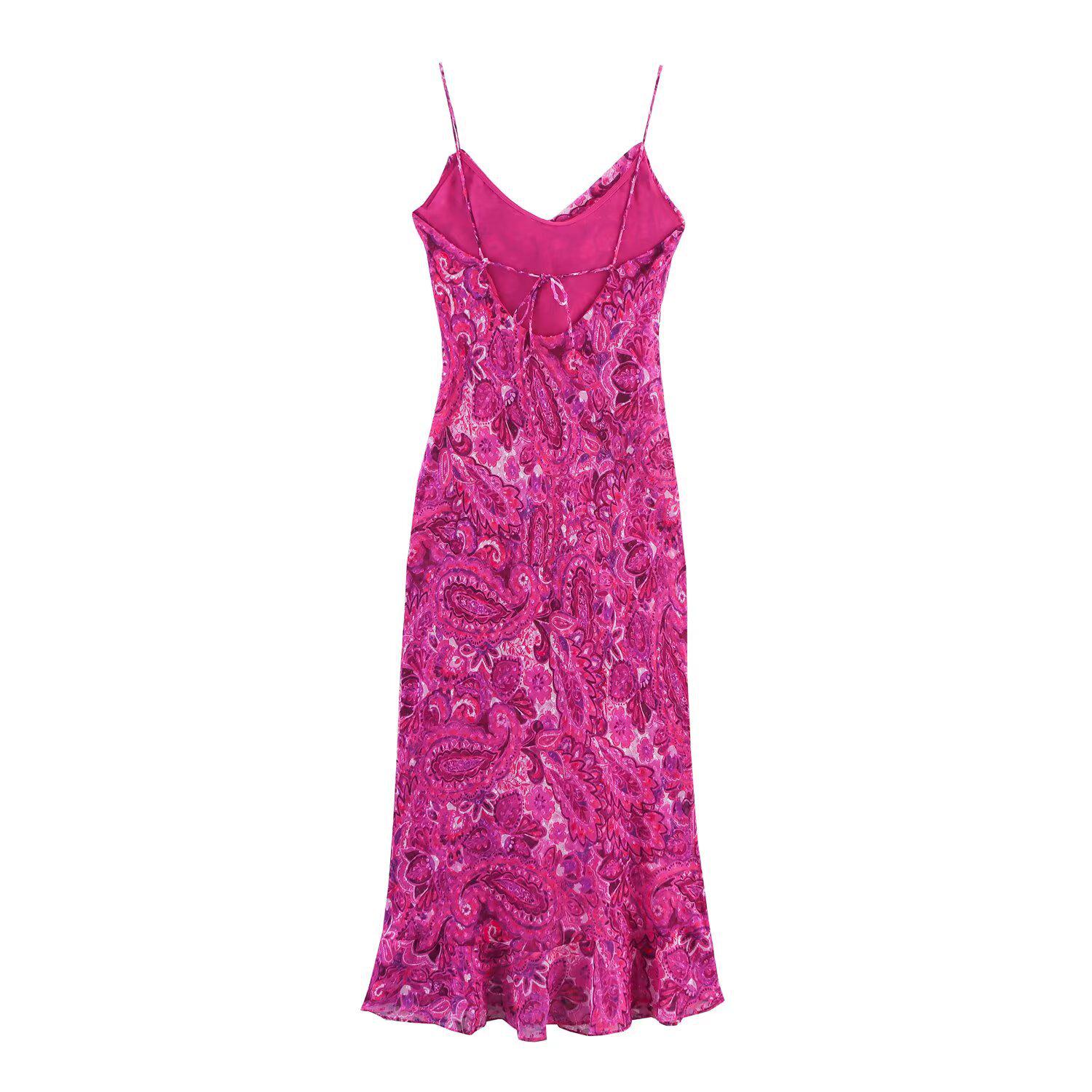 Европейское и американское женское летнее платье миди без спины, в стиле пэчворк, с оборкой по подолу, на бретелях-спагетти, 2025 Large как