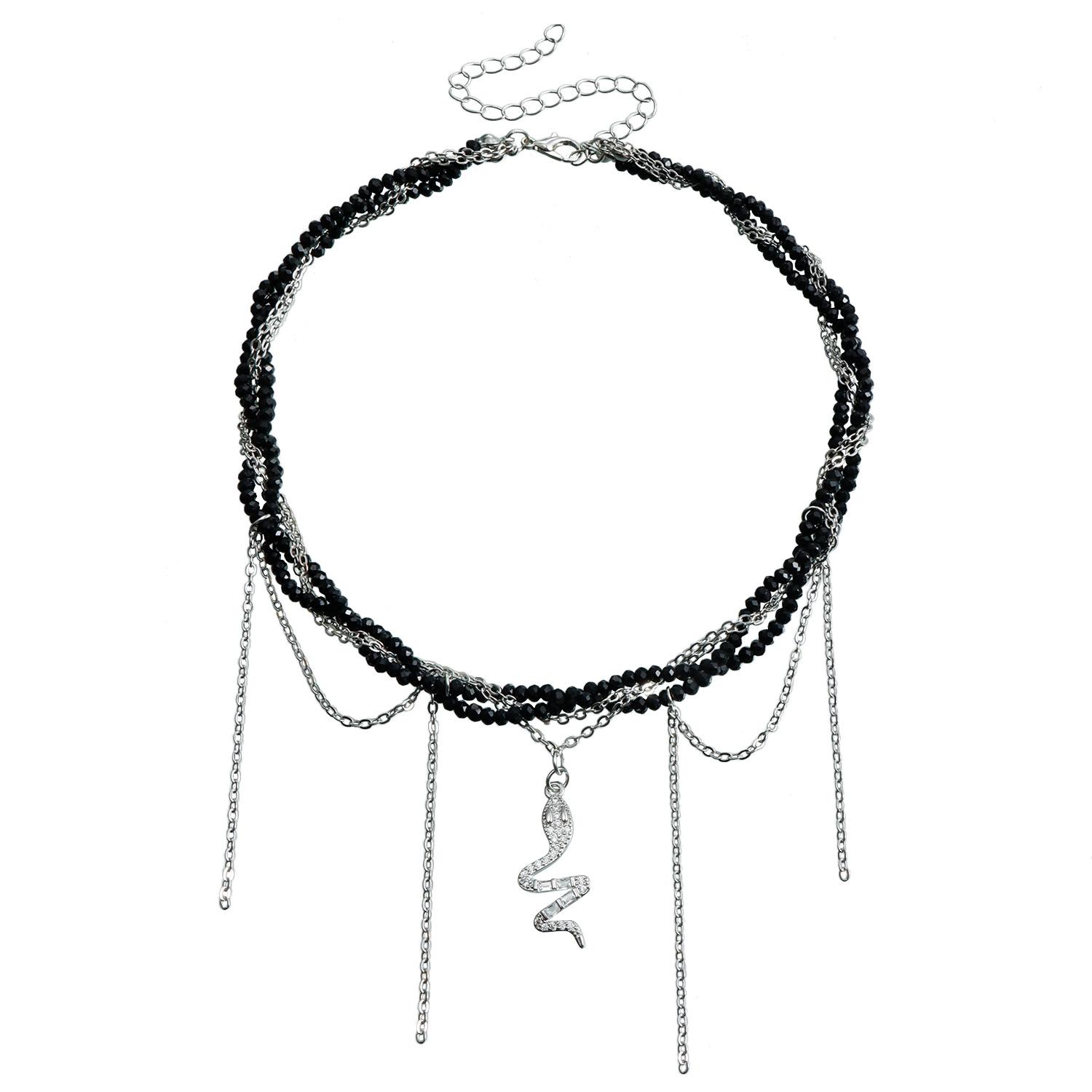 Европейское и американское ожерелье-змейка с инкрустацией бриллиантами - Цепочка на ключицу из стекла и хрусталя с кисточками