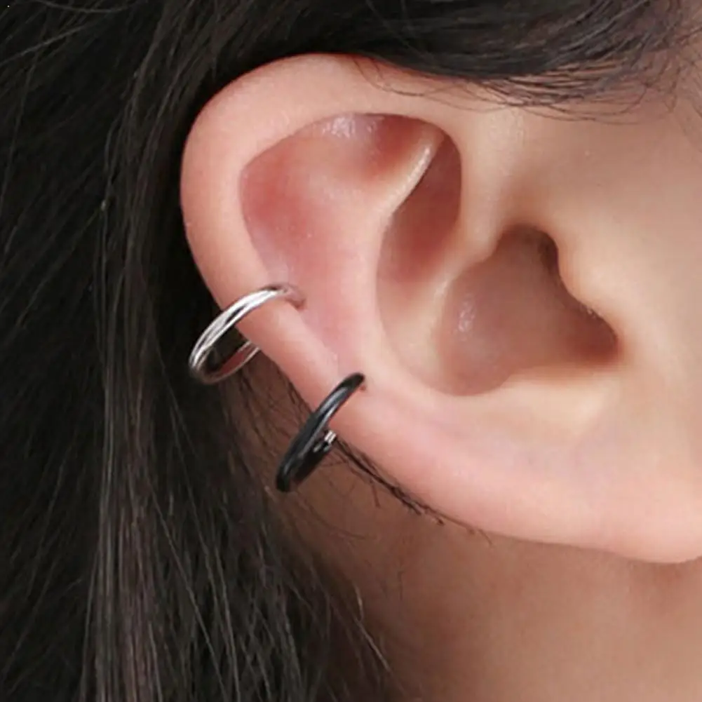 Европейское и американское простое маленькое золотистое серебряное кольцо, ювелирное изделие, клипсы для пирсинга, серьги без ушей, многоф...