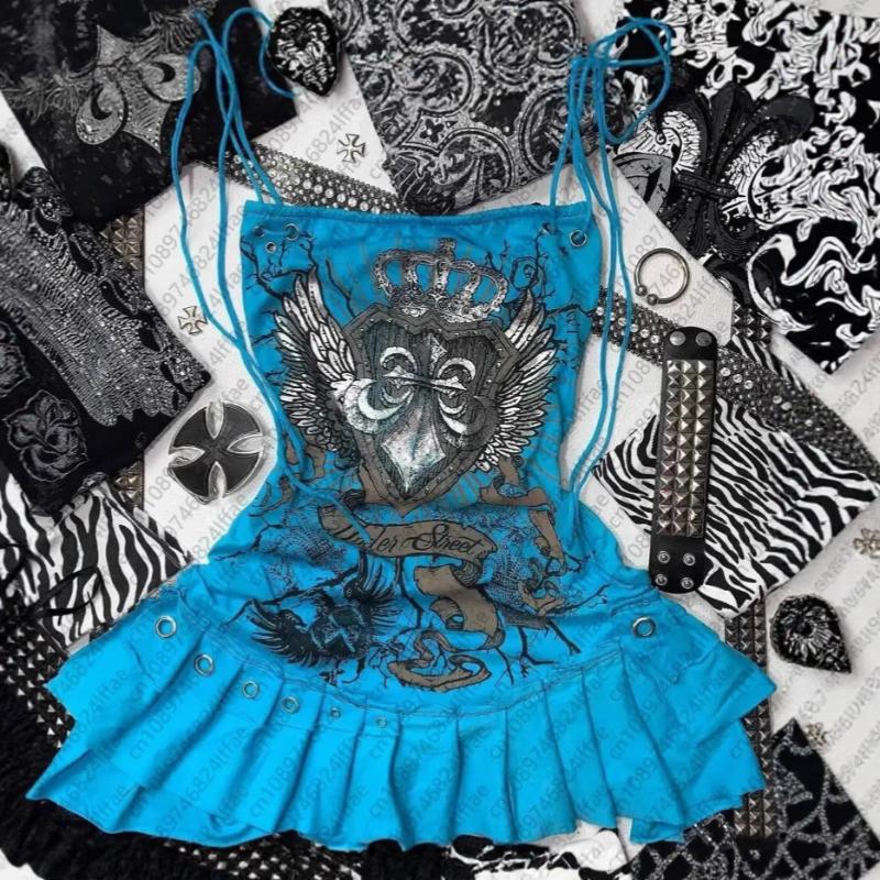 Европейское и американское Y2K облегающее платье с принтом подтяжек, модное, в стиле ретро-панк S