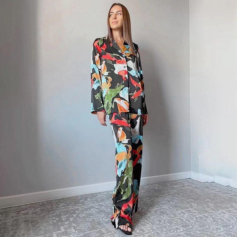Европейско-американская мода Цветочный принт Топ и брюки Костюм Домашняя одежда Принтованный топ и брюки Костюм Print S