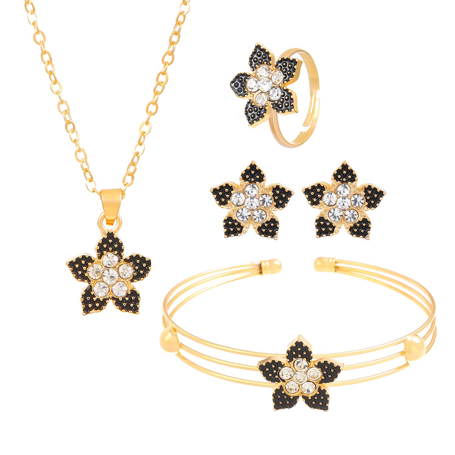 Европейско-американский набор украшений «Сердце и бабочка»: Преувеличенные серьги, кольцо, браслет, ожерелье - Женская модная коллекция из четырех предметов