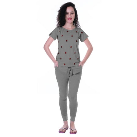 Moomaya Nightwear Set Watermelon Embroidery Slimfit Pyjamas Sleepwear 2 Pcs Set