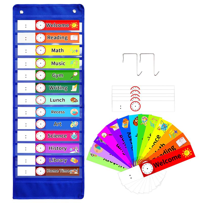 Ежедневное расписание Карманный график Школьный класс Домашний Оксфорд Ткань Дети Календарь Подвесная сумка Крепление на стену на дверь Карманный график синий