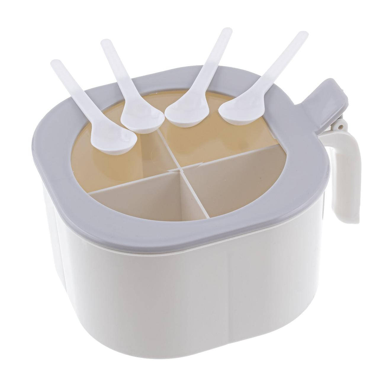 Емкость для сыпучих 4 отделения, пластик крышка / ложки 14 * 8 см серая, Серый