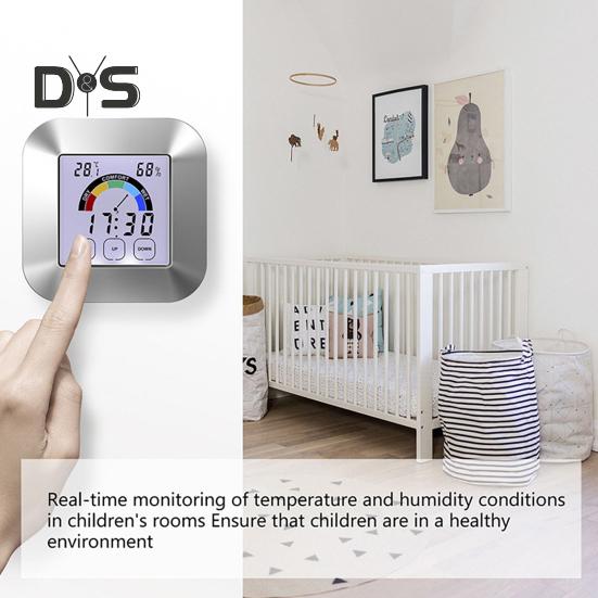 ЖК-цифровой гигрометр, термометр, измеритель температуры для помещения и улицы, датчик температуры в помещении, монитор температуры с сенсорным экраном, часы-будильник с подсветкой серебряный