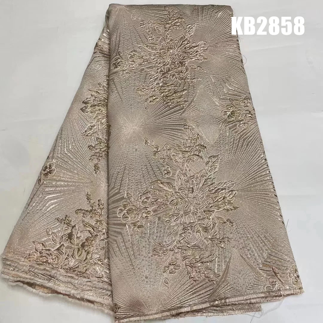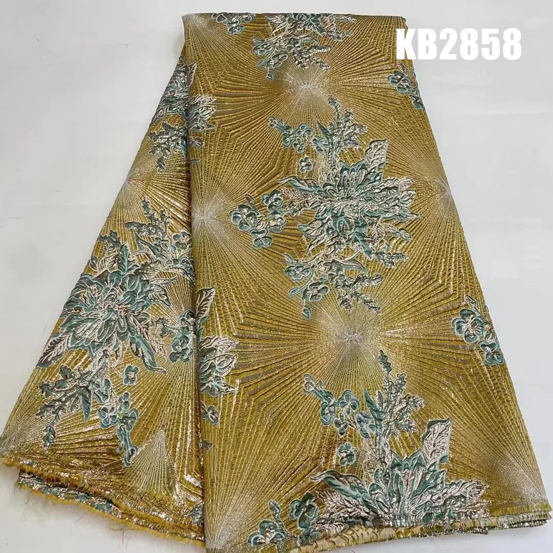 Жаккардовая Роскошная ткань из парчовой ткани, африканская Цветочная Дамасская ткань, нигерийские Позолоченные кружевные материалы, ткань для платья KB2858