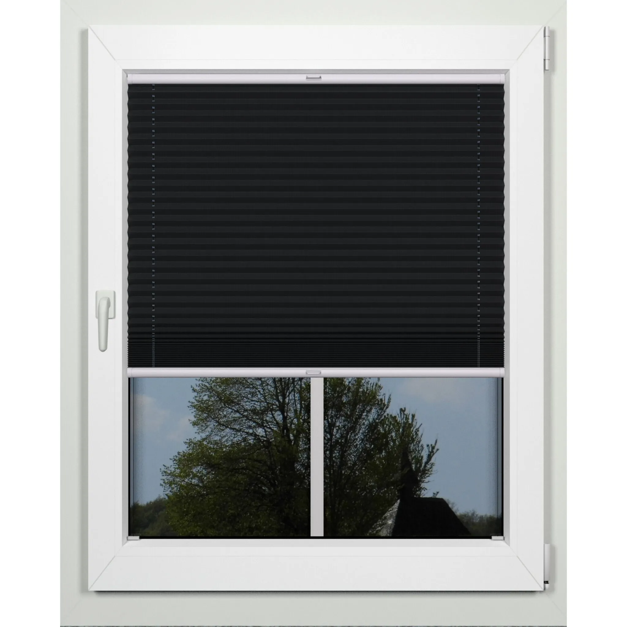 Жалюзи-плиссе Indeko «простые», светозащитные, с отверстием, натяжные, на заказ, цвет schwarz + weiß
