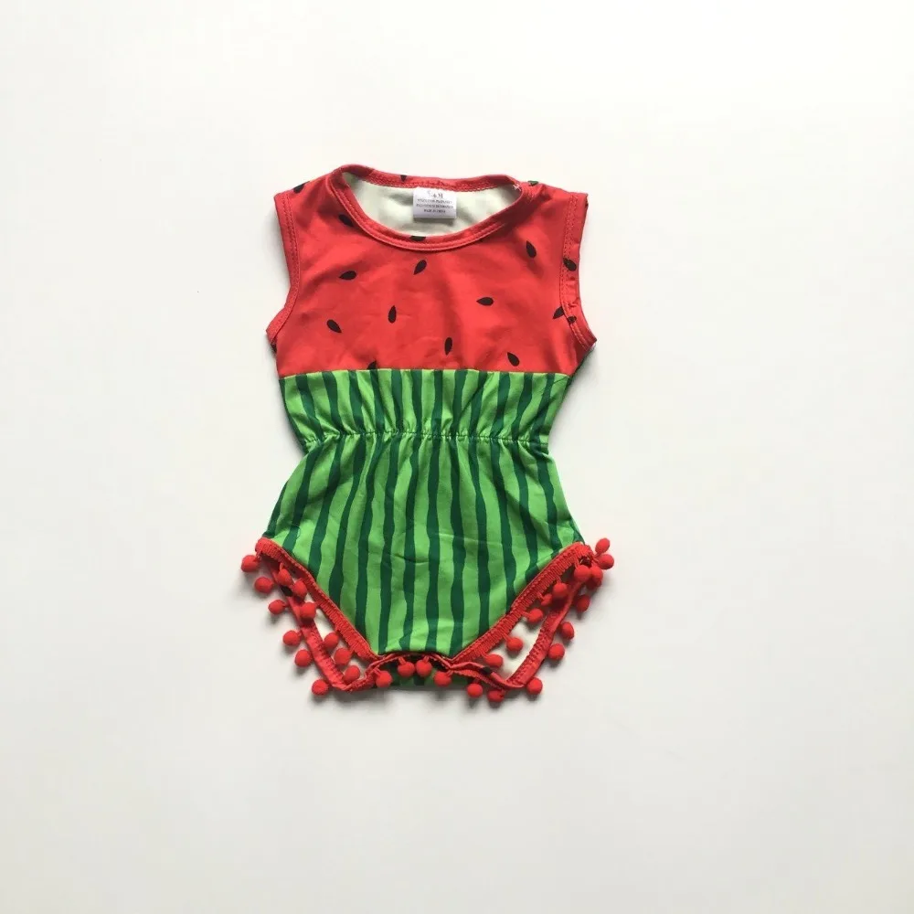 new arrivals summer jump suit green stripe watermelon baby girls boutique clothing infant cotton tutu romper Toddler pom-pom
