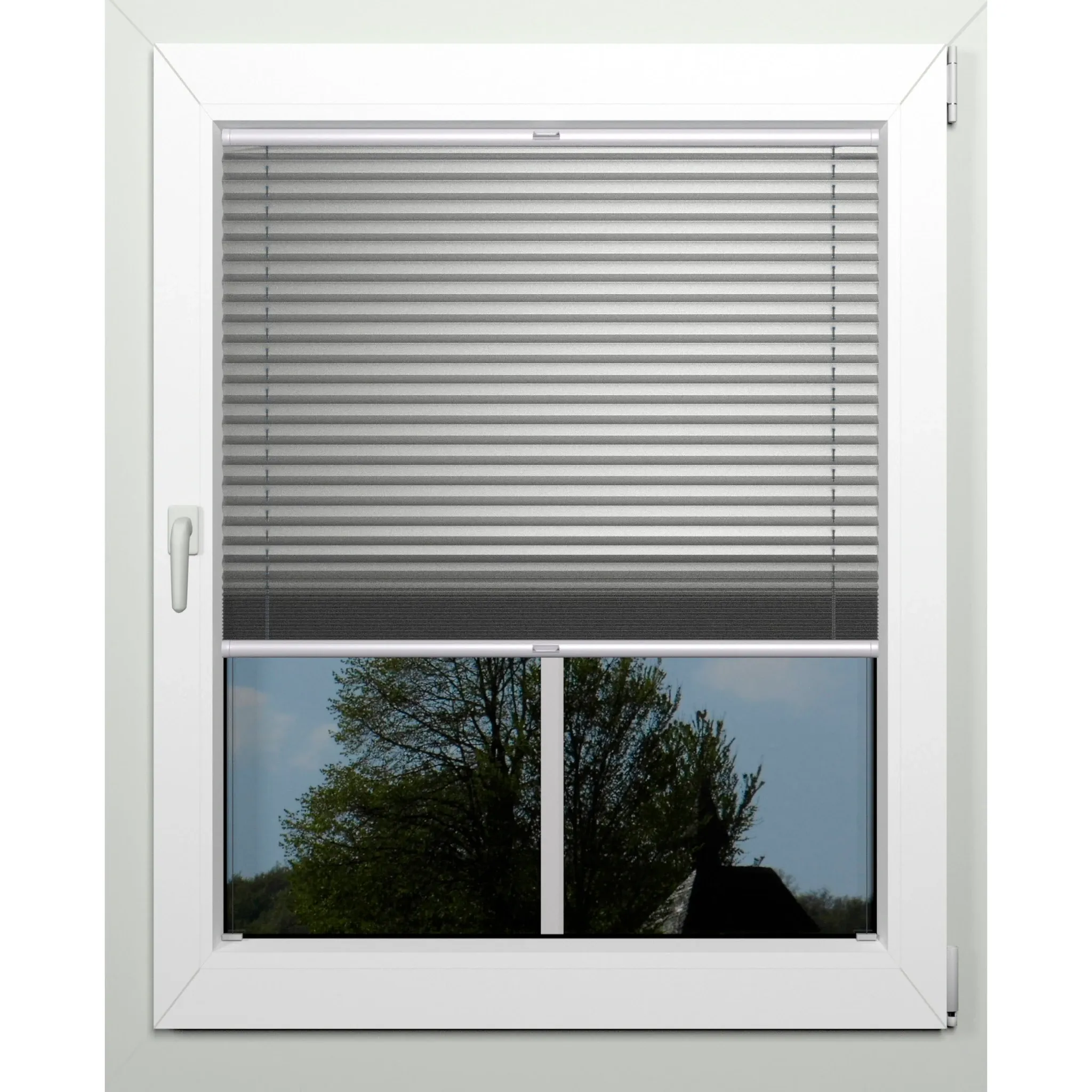 Жалюзи плиссе indeko «Термо-Делюкс», затемняющие, энергосберегающие, со сверлением, натяжные, для установки в штапик, на заказ, цвет grau/metallfarben + weiß + weiß