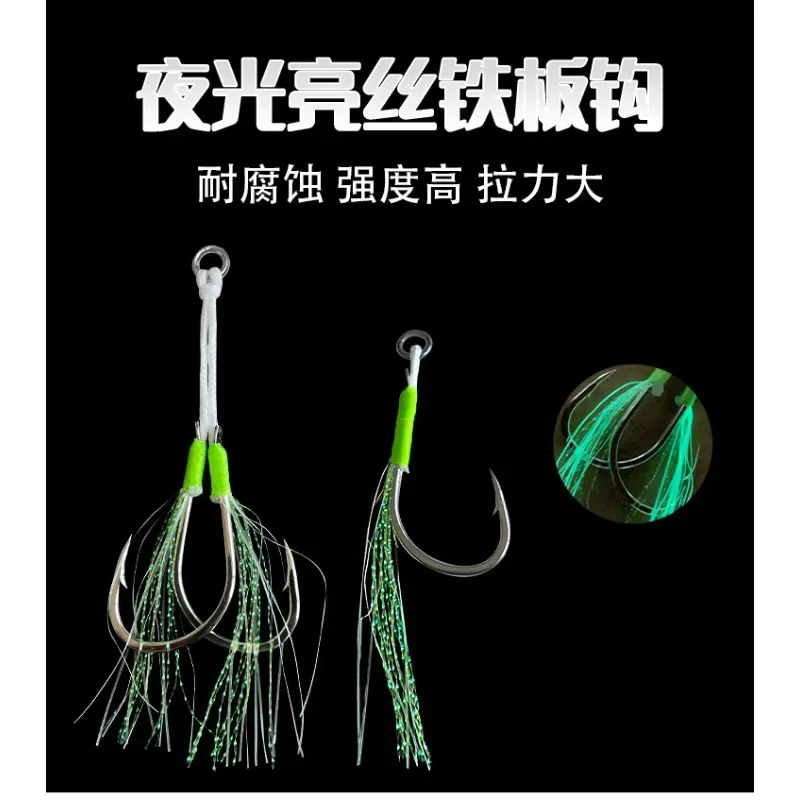 Железная пластина для морской рыбалки, светящаяся в темноте, с одним крючком, в два раза улучшенная, черная, блестящая, шелковая, флуоресцентная ручка