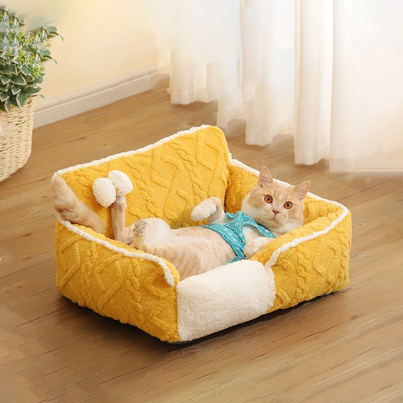 Желтая кровать для кошек, собачья кровать, Конура, нескользящая, зимняя, теплая, толщина маленькой собаки, детская съемная, смытая мягкая подушка для щенка