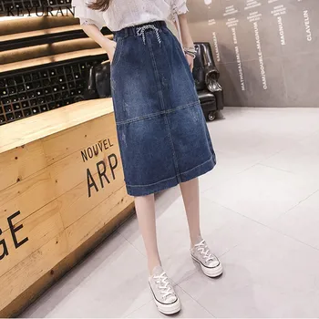 2020 Women's Plus Size Jeans Skirts Elastic Waist Denim Skirt Feminino Vintage Pleated Loose Casual Skirt S-5XL L3152