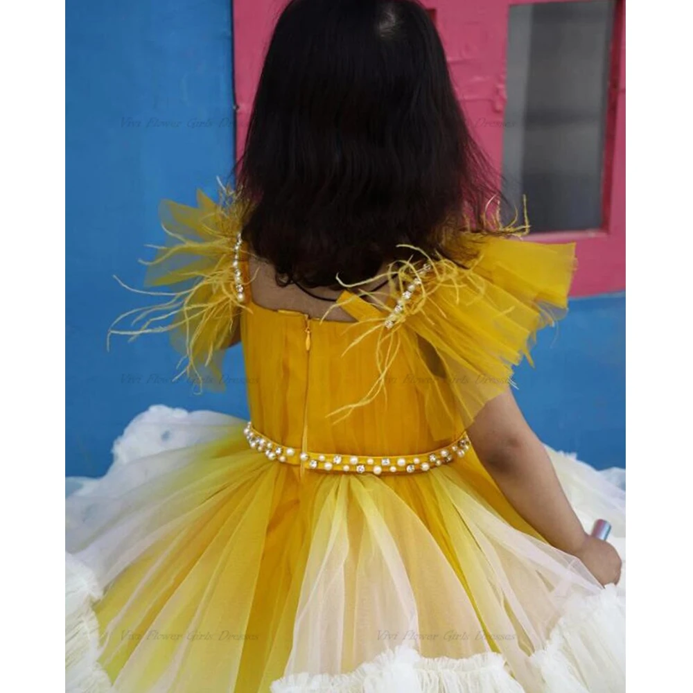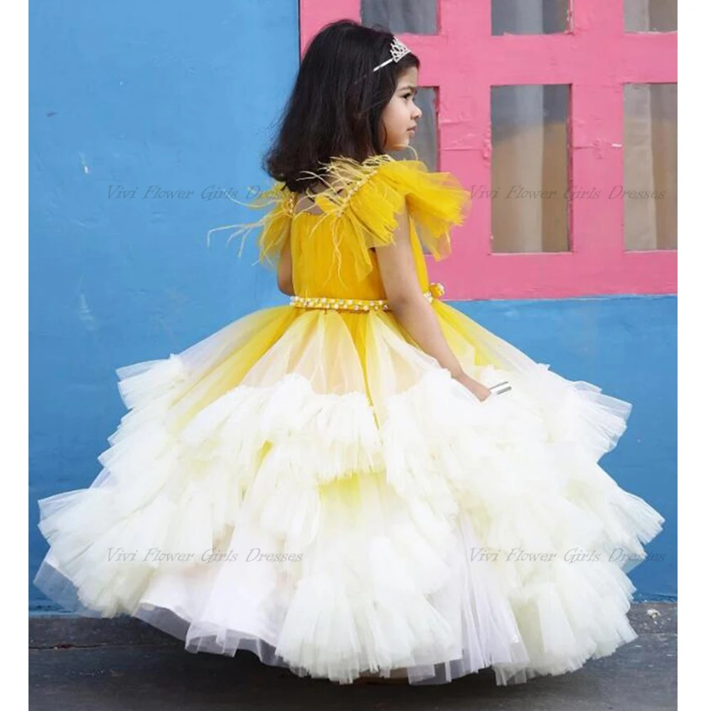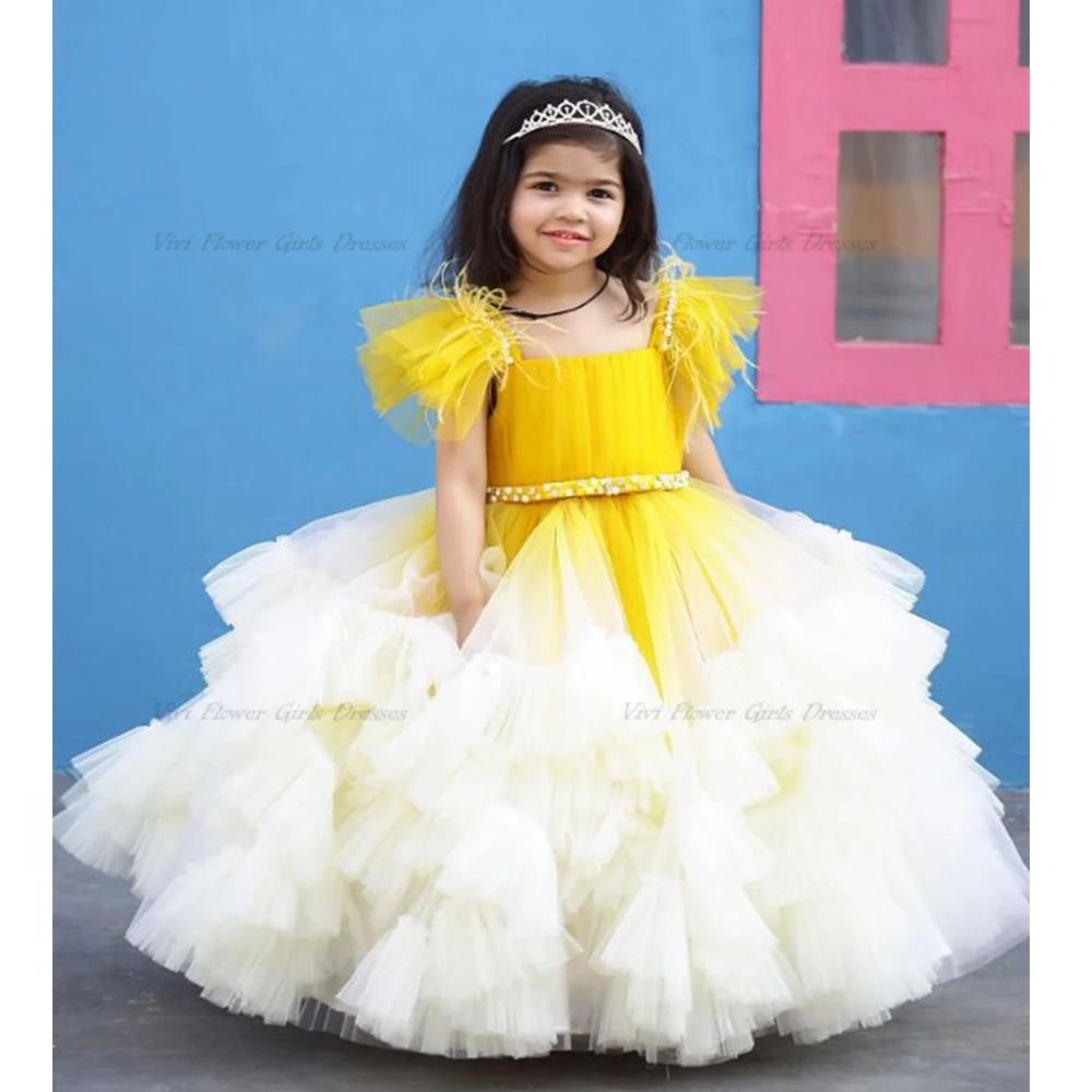 Желтое платье принцессы на день рождения, фатиновое платье в пол с цветами для свадьбы, детское платье, размер 2023, Новинка