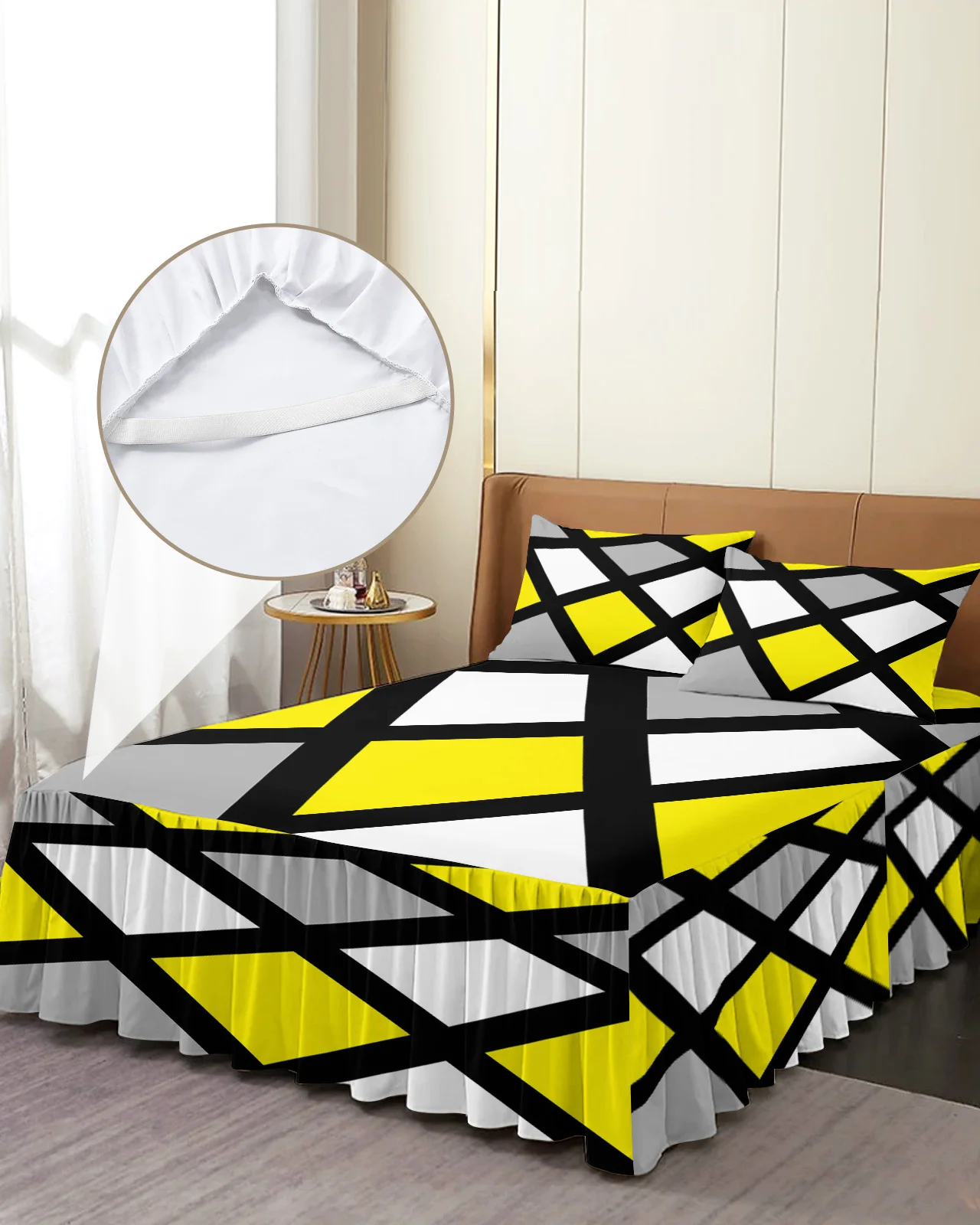 Желтое черное серое геометрическое квадратное постельное белье эластичное постельное белье с наволочками наматрасник Комплект постельного белья простыня