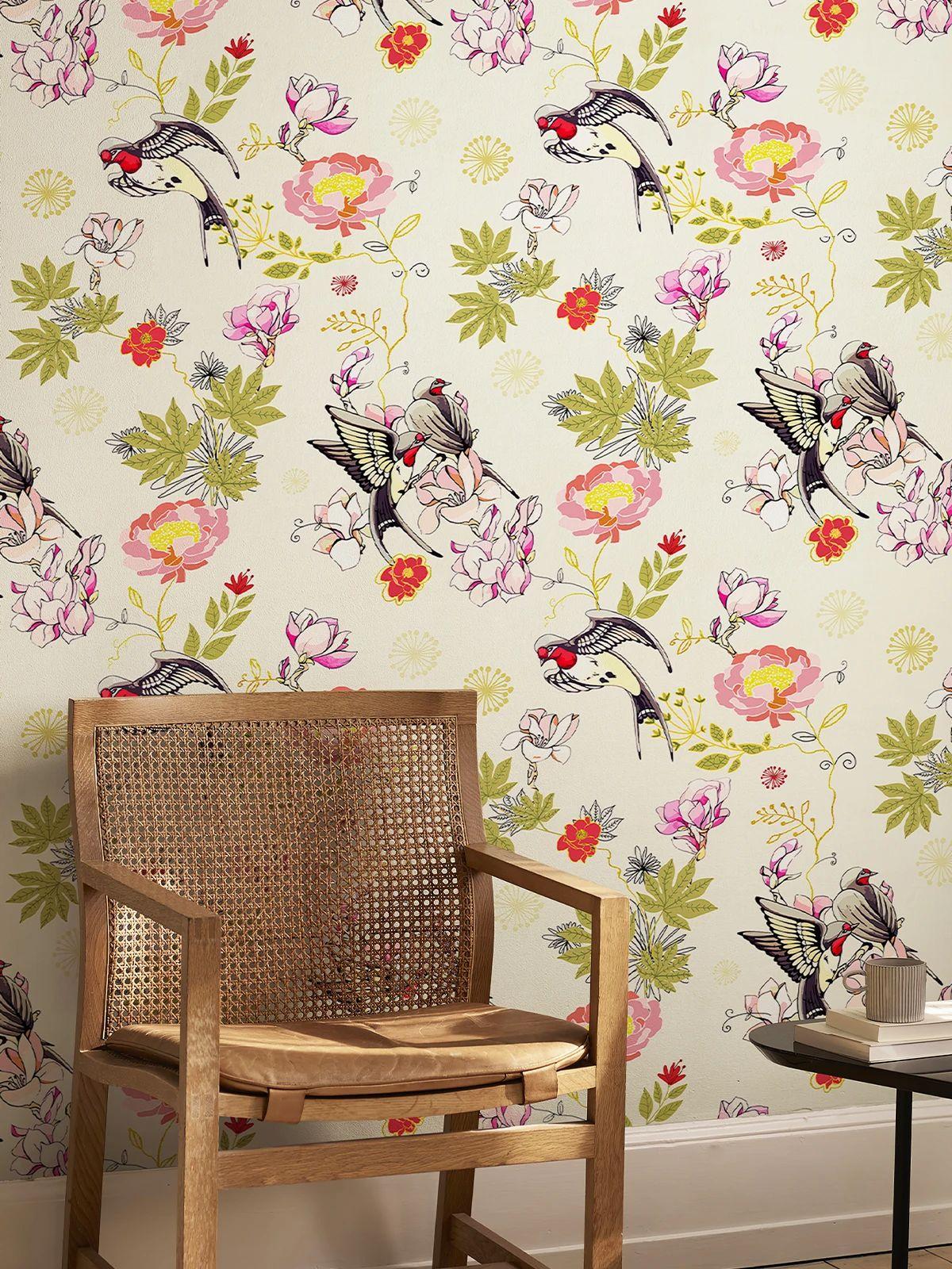 Желтые ласточки Самоклеящиеся обои Ретро Золотые листья и цветы Декор стен Водонепроницаемая наклейка для ванной комнаты кухни 44cmx300cm