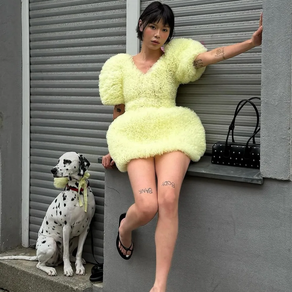 Yellow Tulle Prom Dresses V Neck Puffy Short Sleeves robes de cocktail Gowns Girls Birthday Dress Ruffles Tulle Party Gowns