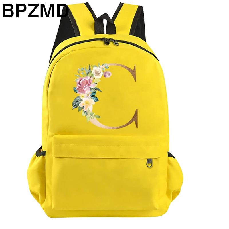 Желтый рюкзак с 26 английскими буквами, холст для косплея, детский школьный рюкзак, дорожная сумка, сумка для книг в школу