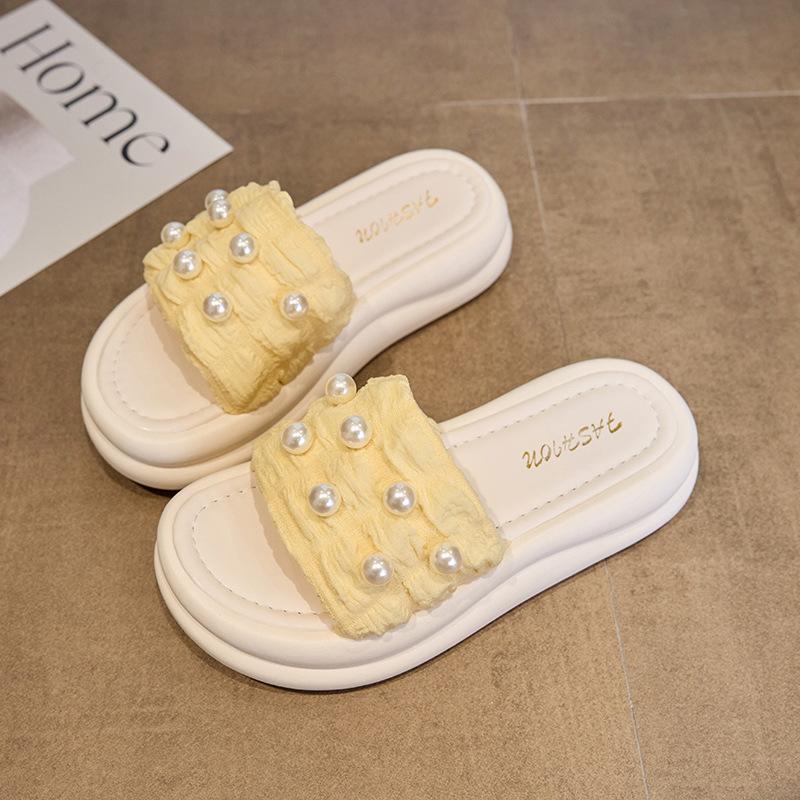 Жемчужные шлепанцы на платформе-маффине, женская летняя обувь 2025, новые универсальные шлепанцы на одном ремешке для пляжного отдыха на море 40 жёлтый