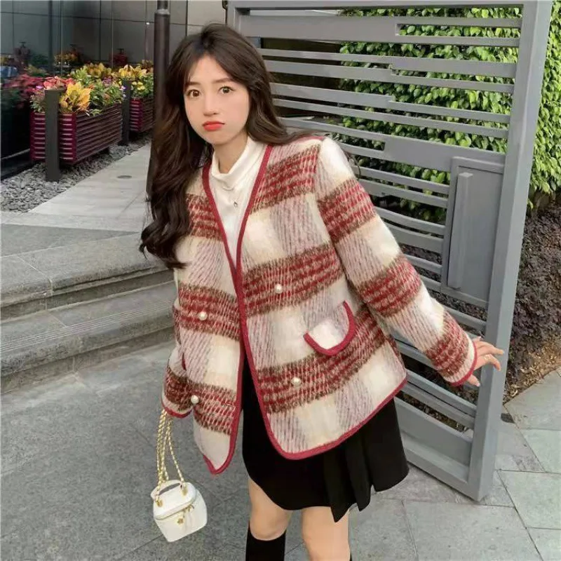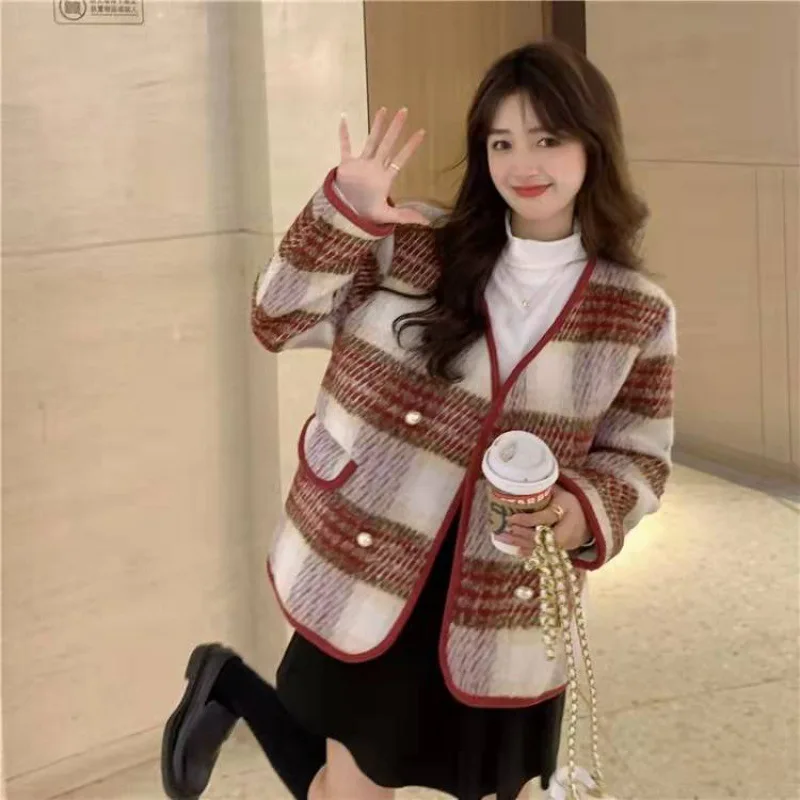 Женская Вельветовая куртка в Корейском стиле, осенне-зимняя куртка с V-образным вырезом, клетчатая утепленная теплая Женская куртка в стиле ...