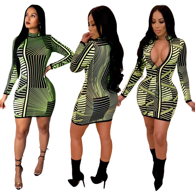 Женская Весенняя новая модель 2019, юбка для ночного клуба в европейском и американском стиле, популярное платье в полоску с V-образным вырезо...