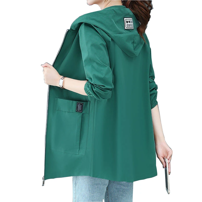 Женская Весенняя однотонная ветровка, Новая модная женская куртка средней длины с большими карманами, свободная верхняя одежда большого ра...