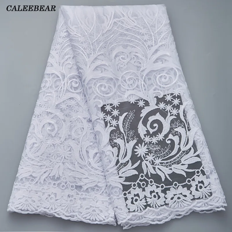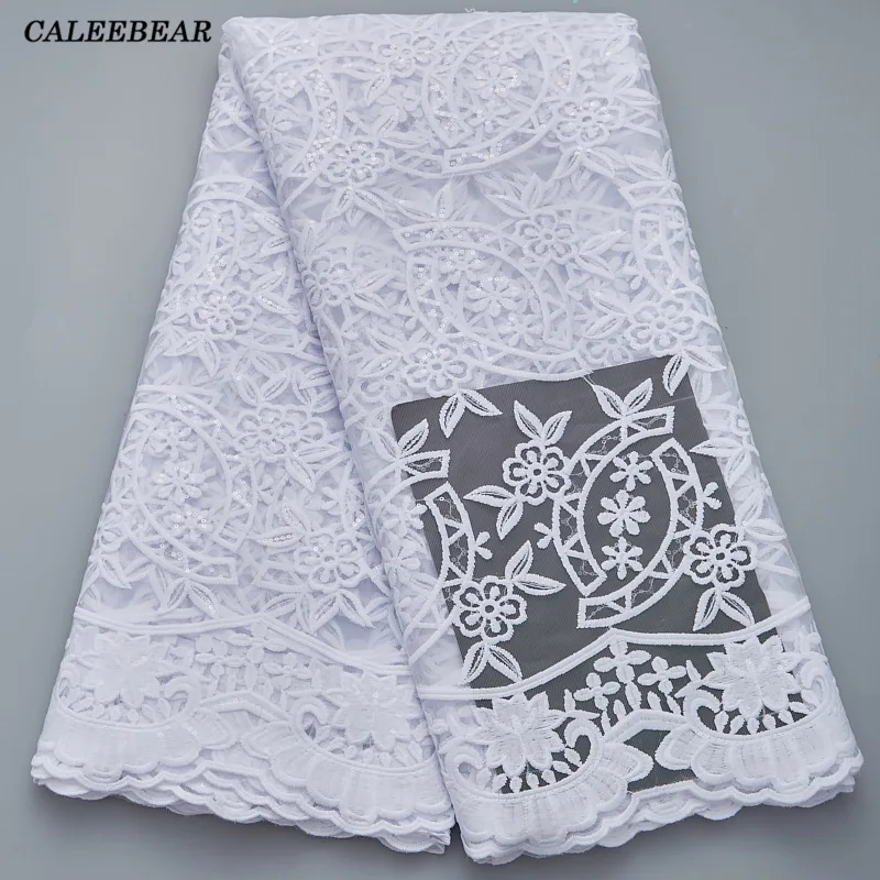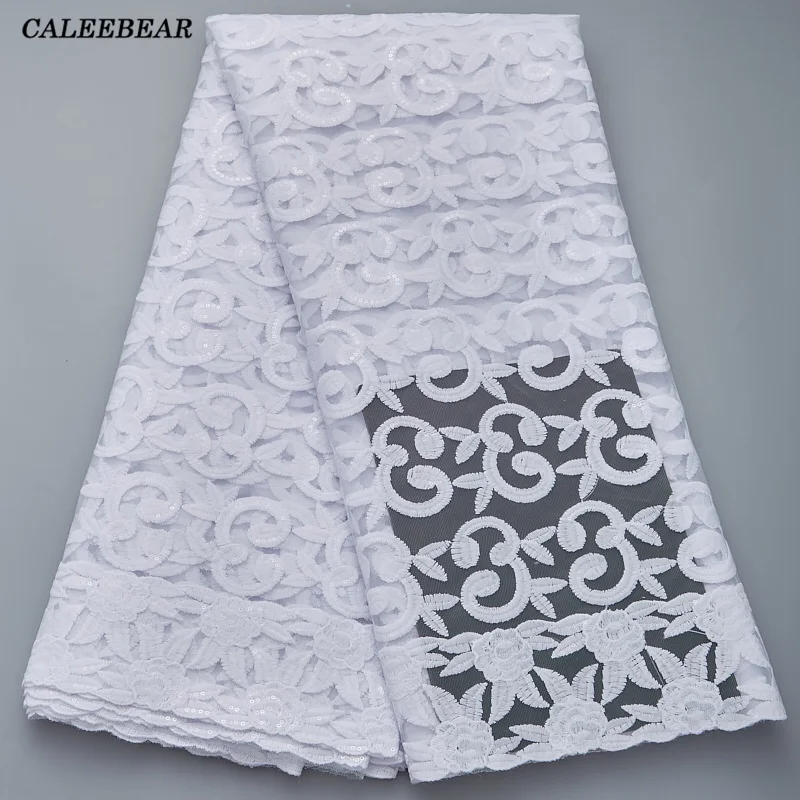 Женская Вышивка, африканская кружевная ткань, 5 ярдов, Белая французская молочная шелковая кружевная ткань, кружевная ткань для платья «сделай сам» S2819