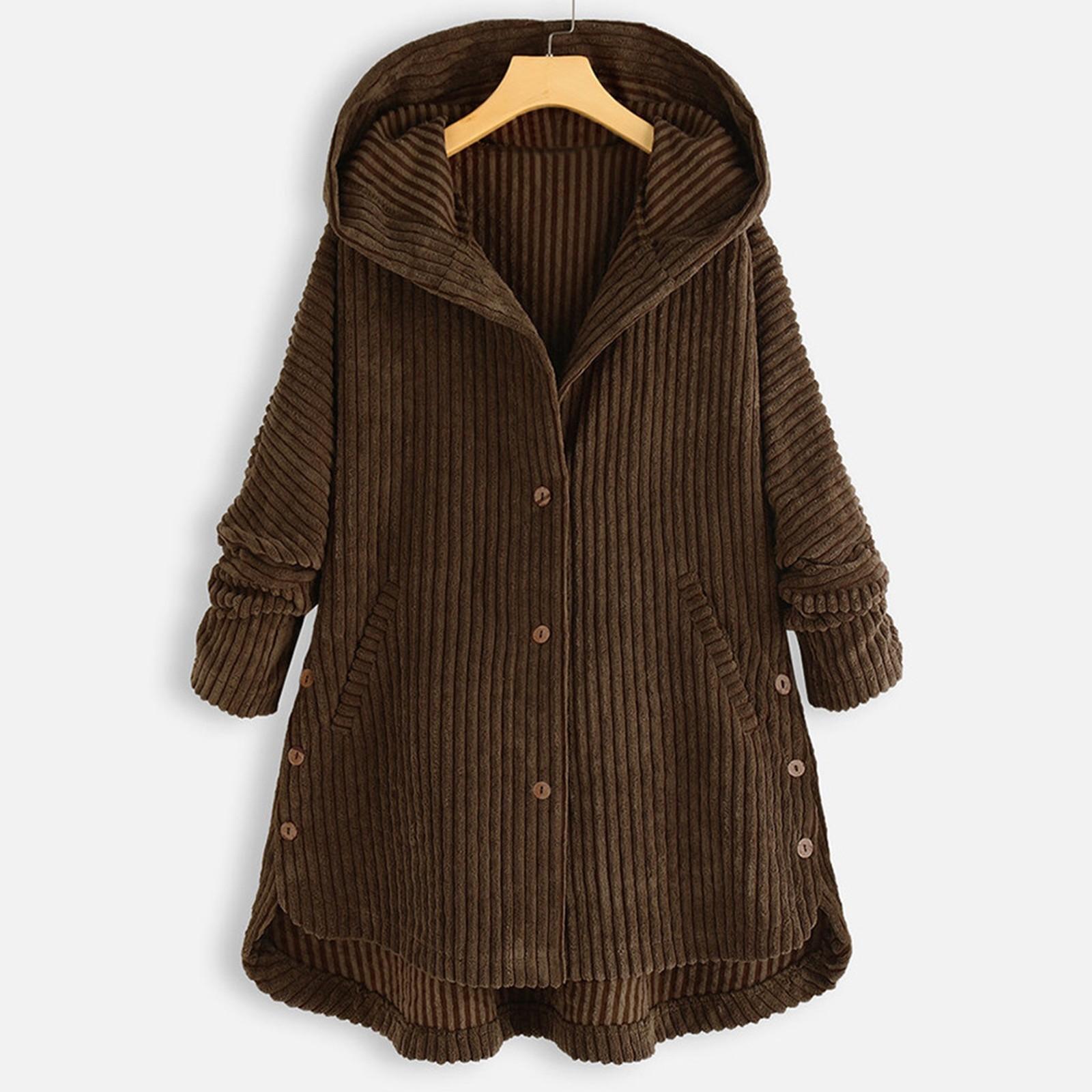 Женская И Зимняя Однотонная Одежда с Пуговицами и Карманами, с Длинными Рукавами и Капюшоном, Пальто XXL хаки