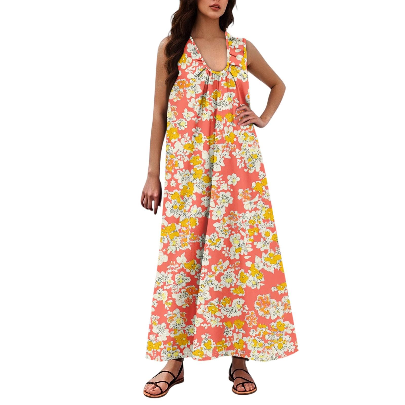 Женская Мода Повседневная А-силуэт Цветочный Принт Эффект Молотка Свободная Длинная Юбка с Карманами XL шафрановый