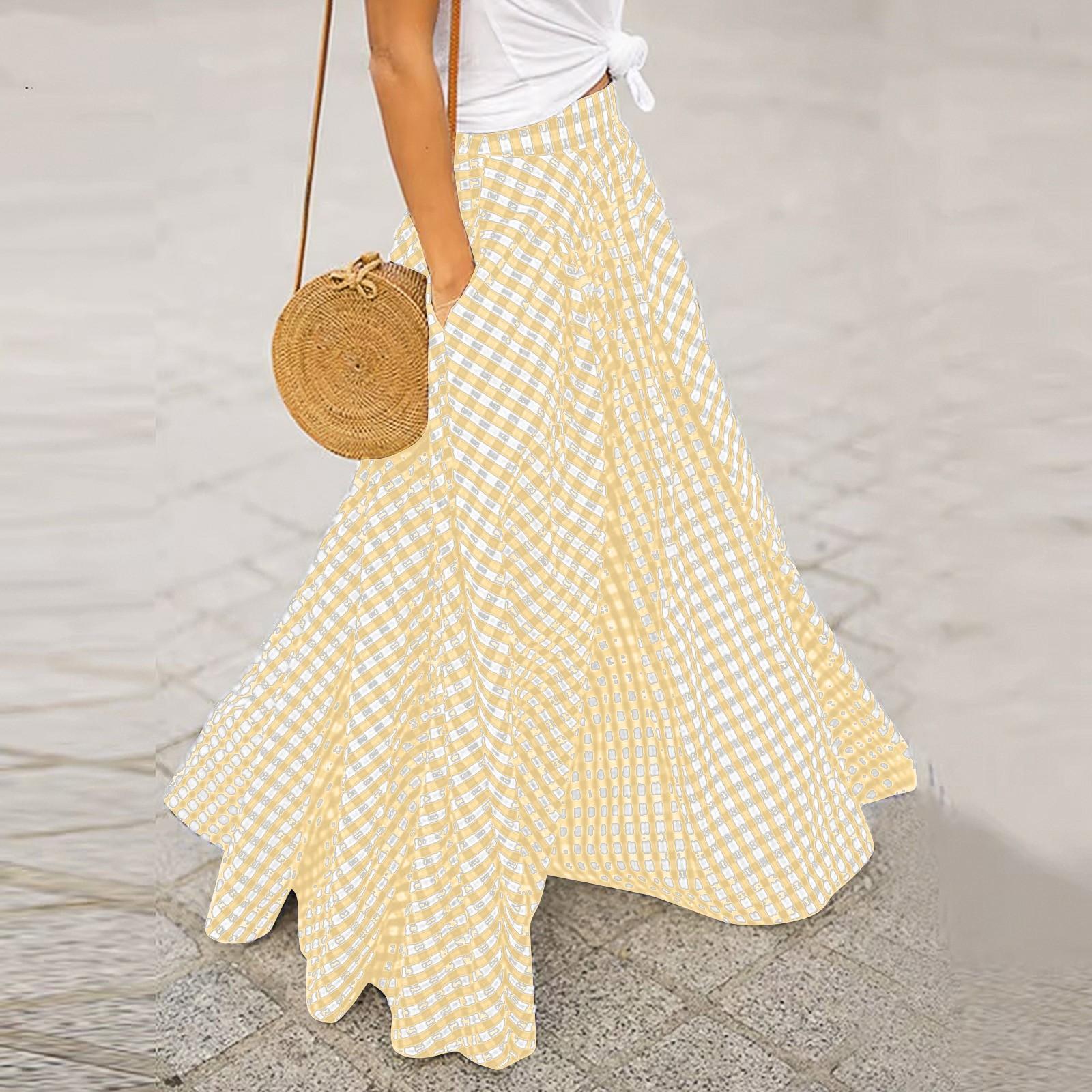 Женская Модная, Элегантная, Универсальная Клетчатая Юбка Миди, С Завышенной Талией, Широкая Юбка Со Складками, Полуюбка