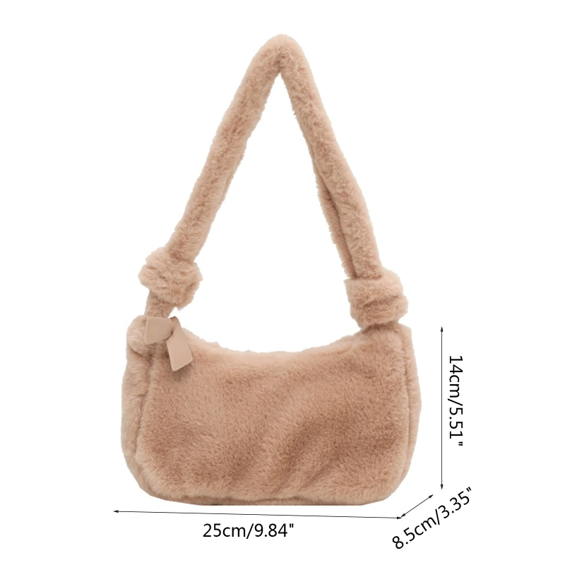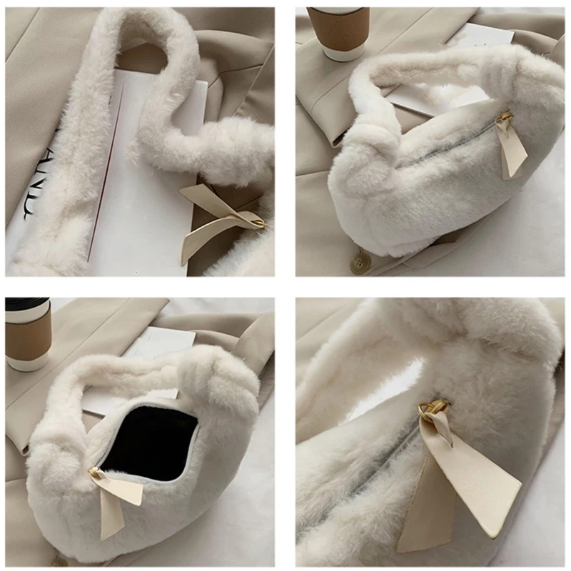Женская Повседневная пушистая сумка через плечо, осенне-зимняя плюшевая сумка для подмышек, однотонная мягкая женская сумка-тоут для покуп...