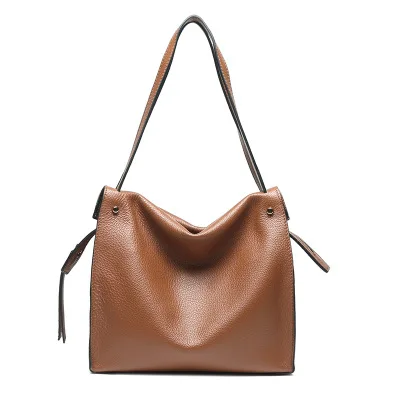 Женская Роскошная Сумка через плечо из натуральной кожи, черная, абрикосовая, коричневая Повседневная сумка из мягкой воловьей кожи для пое...