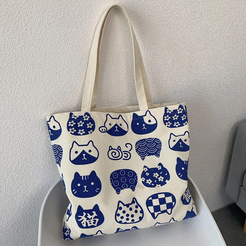 Женская Холщовая Сумка-тоут на плечо, 2021, сумка-шоппер для девушек, модная повседневная простая вместительная Студенческая сумка с аниме му...