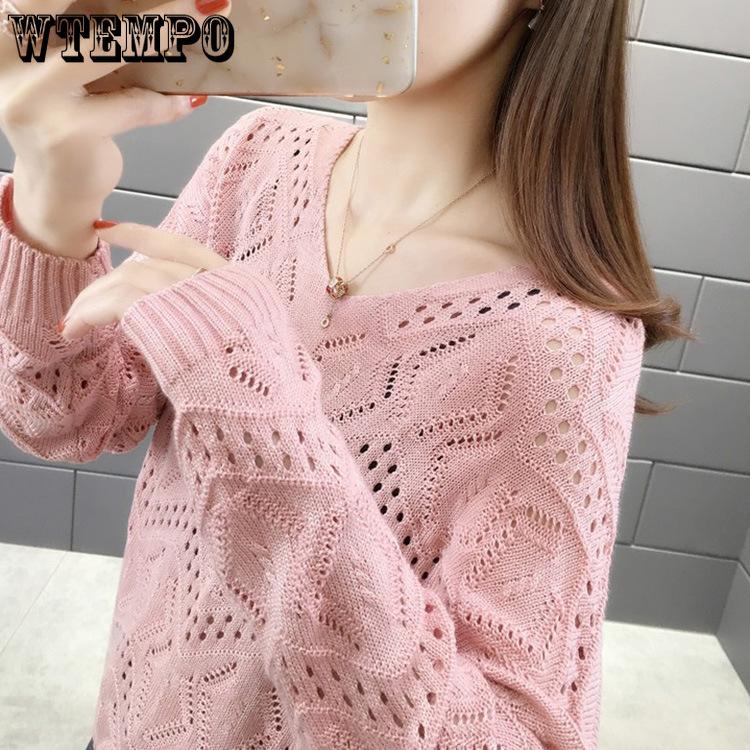 Женская ажурная трикотажная рубашка весна-осень с V-образным вырезом, свободная верхняя одежда, короткий стиль, свитер, нижняя часть рубашки S розовый
