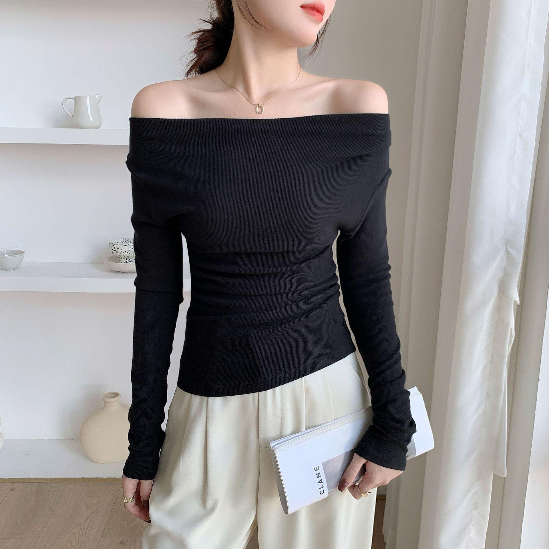 Женская базовая рубашка с длинным рукавом, облегающего кроя, на одно плечо, однотонная, для осени/зимы S (up to 85 lbs) чёрный