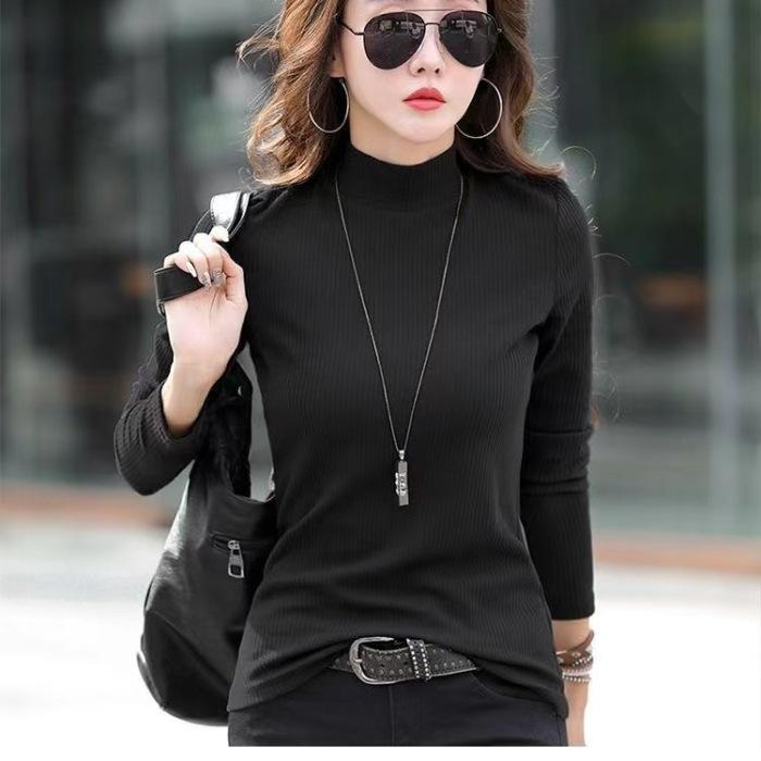 Женская базовая рубашка с полувысоким воротником, облегающая, осенне-зимняя, приталенная, весенне-осенняя, универсальный топ с длинным рукавом 4XL чёрный