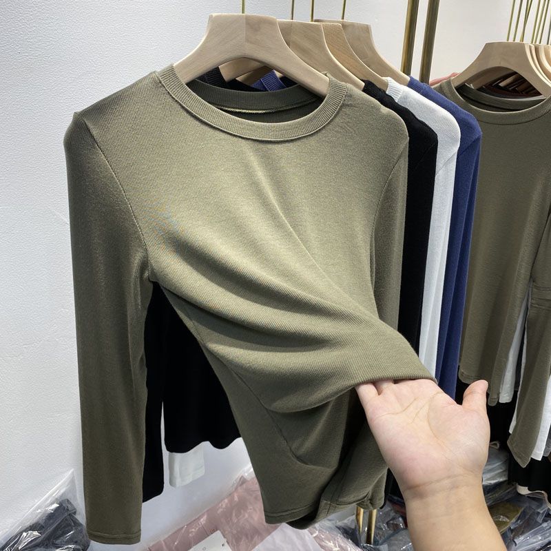 Женская базовая футболка с круглым вырезом, облегающая, однотонная, многоцветная, универсальная, трендовая, повседневный топ, рубчик, длинный рукав, эластичная XXXL
