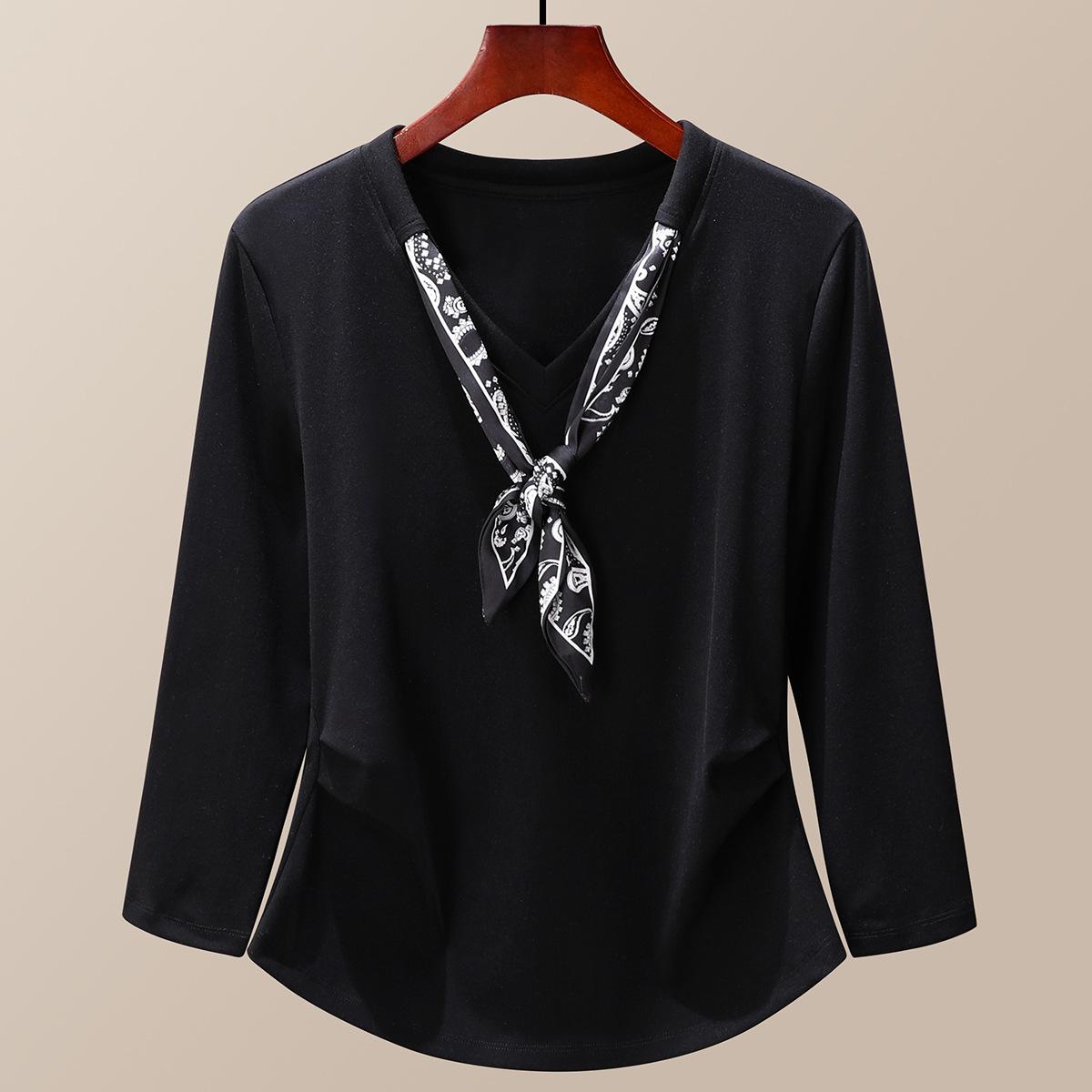 Женская блузка с рукавами-фонариками, дизайн с лентами, новая модель ранней осени, мятая и тонкая, универсальная, нишевая, для ношения под низ. XXXL чёрный