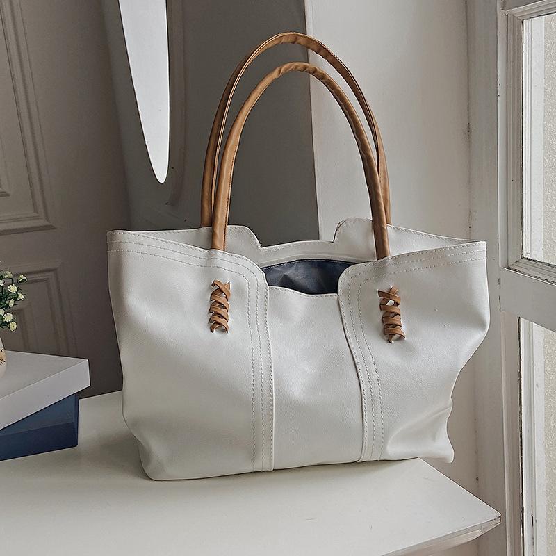 Женская большая вместительная сумка-тоут, модная однотонная повседневная сумка из искусственной кожи на молнии MIT чёрный